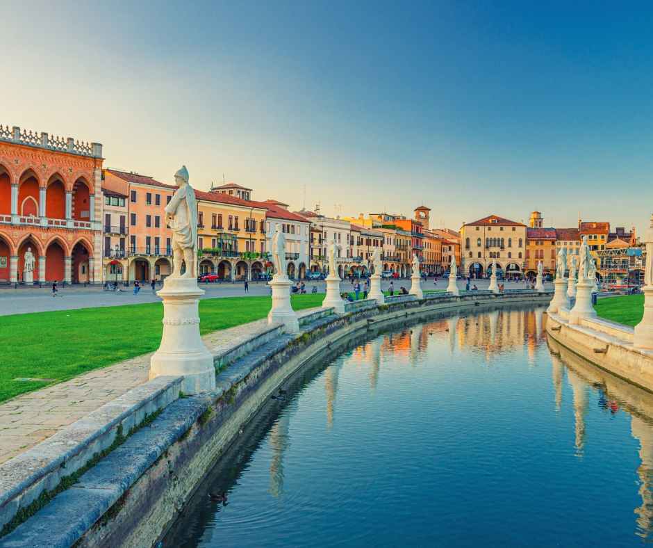 С влак се отправяме към първата спирка от днешното приключение – живописния град Падуа, съхраняващ богато историческо наследство. Пешеходната обиколка ще започне от ЖП гара Падуа, за да достигнем чак до необхватния площад „Прато делла вале”. Първата спирка ще бъде параклисът „Скровени”, където се намират известните фрески на италианския майстор Джото. Следва площад Еремитани, където се намира и едноименният музей, съхраняващ историята на Августинския манастир, както и църквата Еремитани, която е най-старият храм в града, по-известна още като Църквата на отшелниците. Отправяме се към Пиаца дей Синьори, където можете да видите и Палацо дел Капитано, който има часовникова кула с астрономически часовник, датиращ още от 1344 г. Преминаваме и през Пиаца дел Ербе и Пиаца дела Фрута, където се намира и Палацо дела Раджоне, по-известно като Средновековното кметсво. Продължаваме към Пиаца дел Санто и базиликата „Сан Антонио”, където се пазят мощите на светеца. Ще завършим обиколката на един от най-големите площади в Европа – Прато дела Вале.
